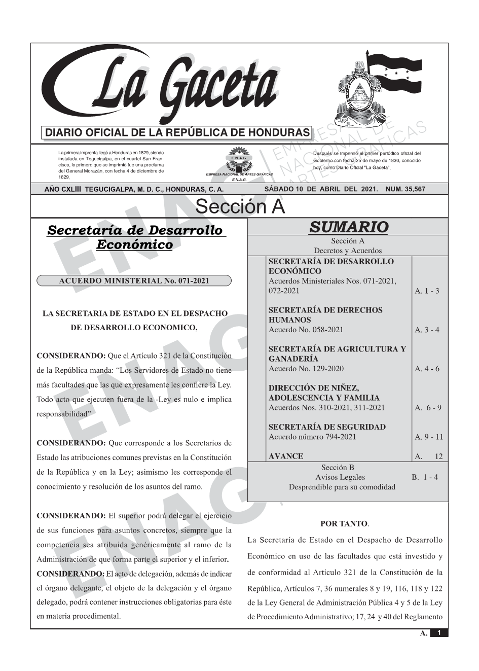 La Gaceta N° 35,567 del 10 de abril de 2021