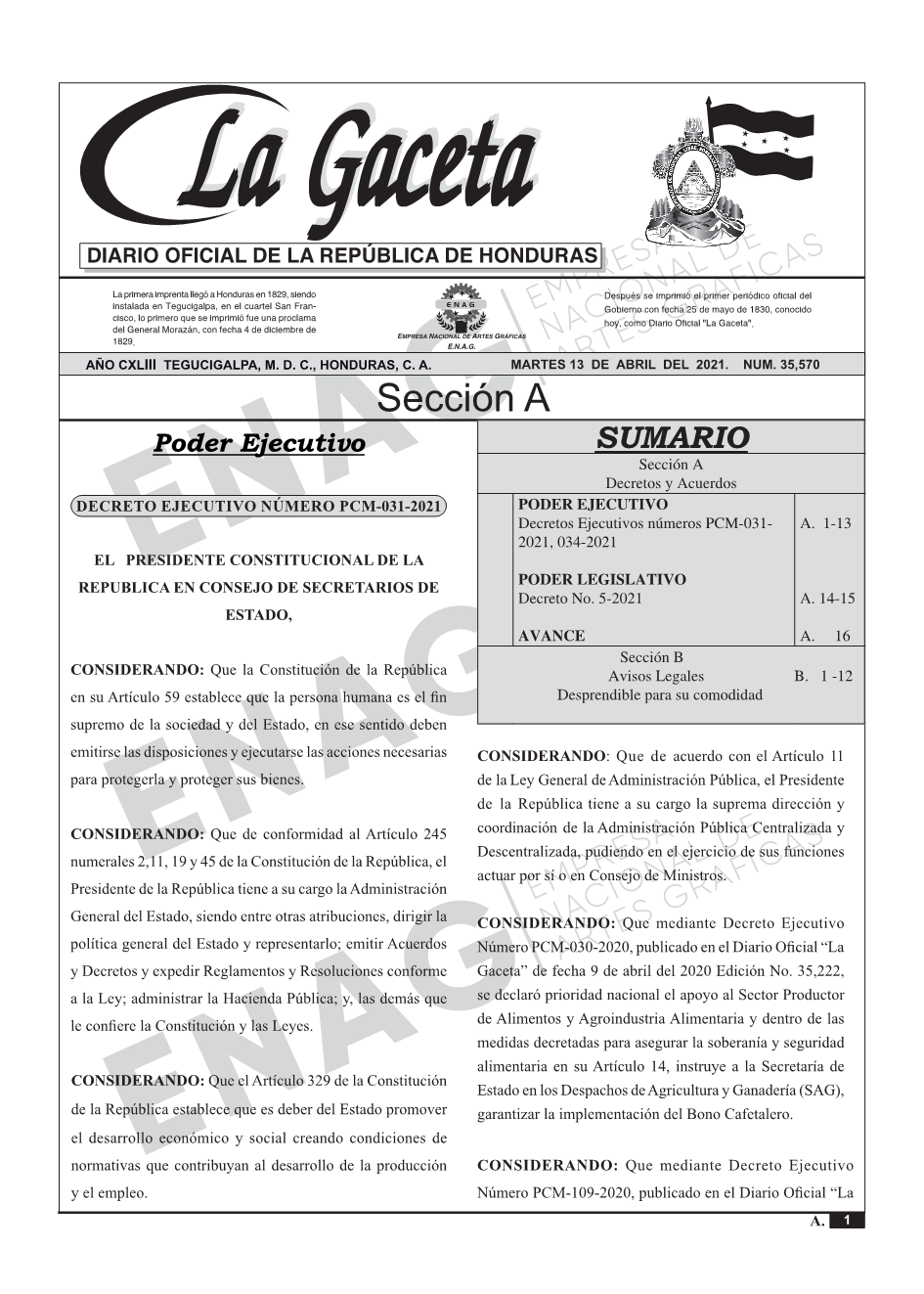 La Gaceta N° 35,570 del 13 de abril de 2021