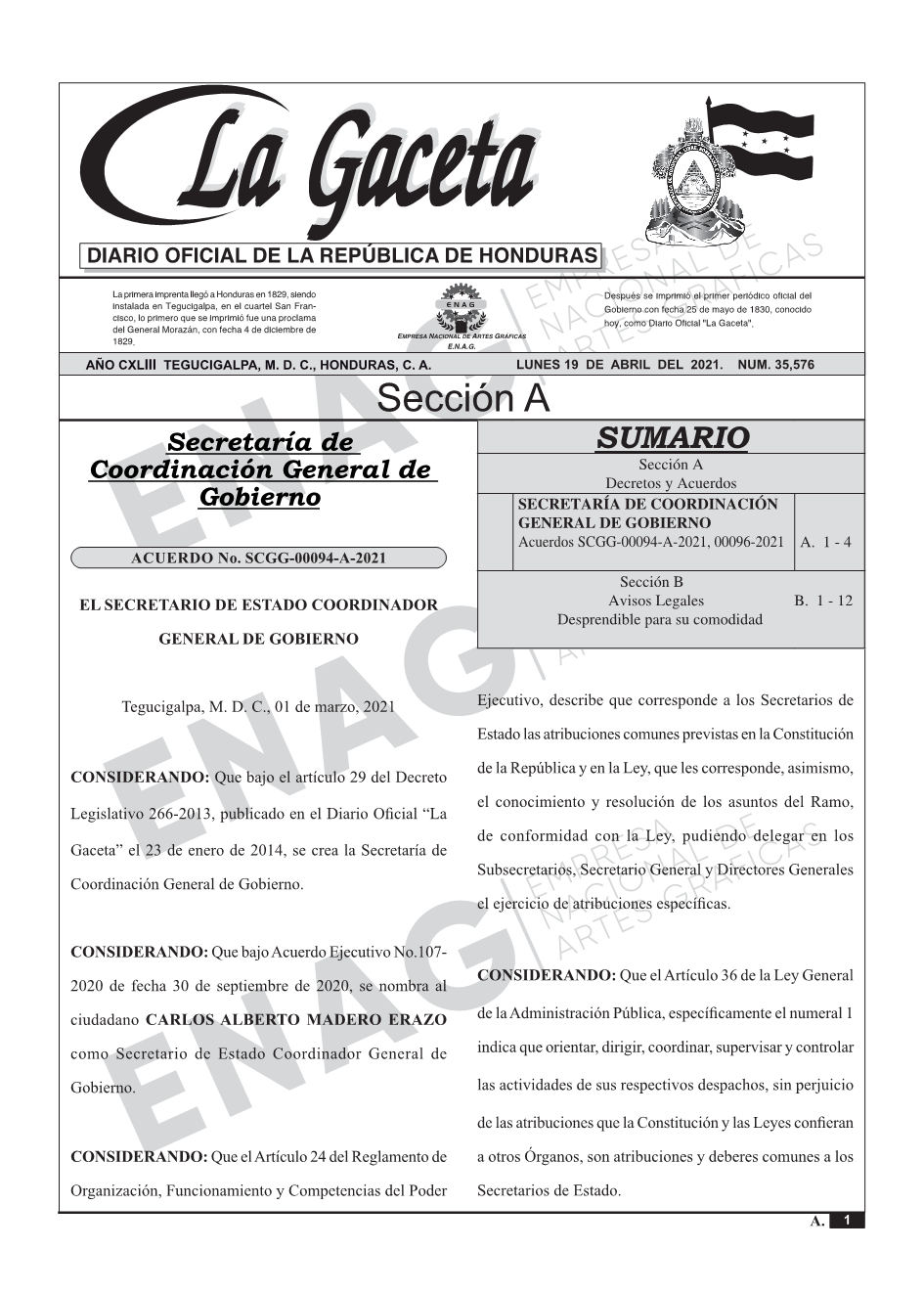 La Gaceta N° 35,576 del 19 de abril de 2021
