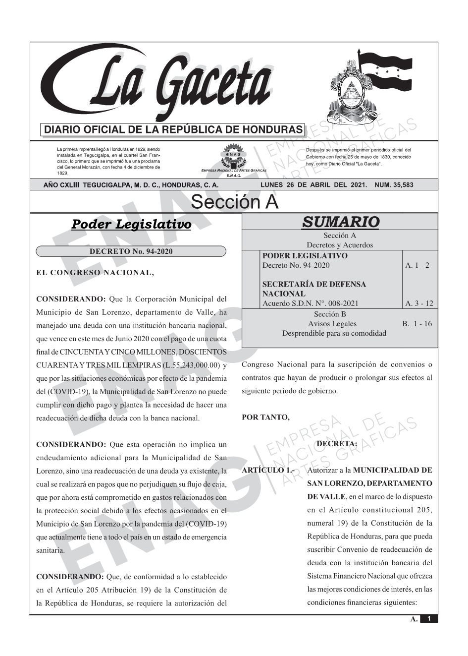 La Gaceta N° 35,583 del 26 de abril de 2021