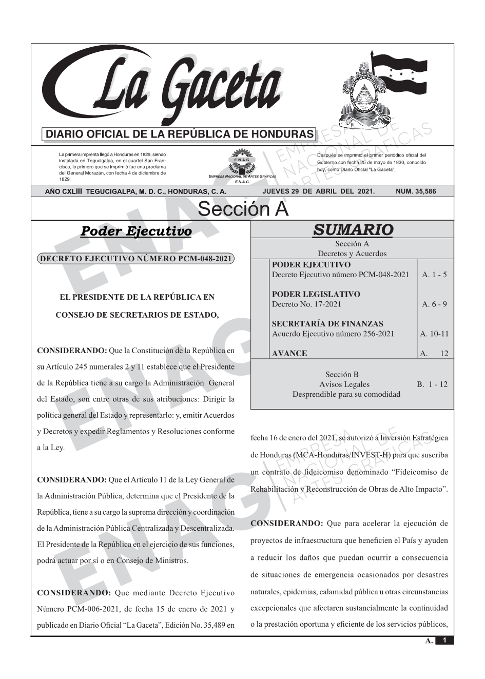 PODER EJECUTIVODecreto Ejecutivo número PCM-048-2021