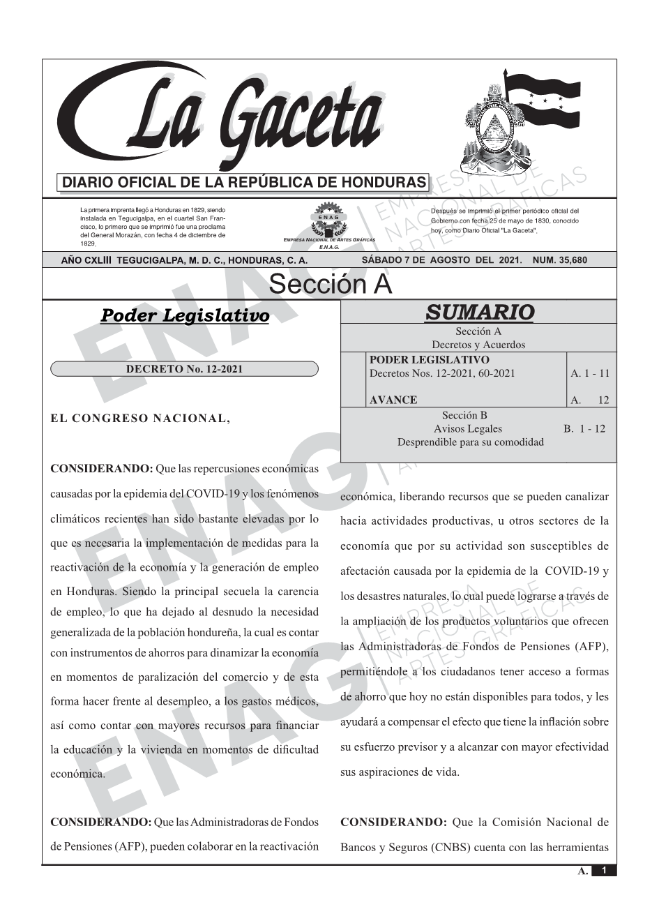 La Gaceta N° 35,680 del 07 de agosto de 2021