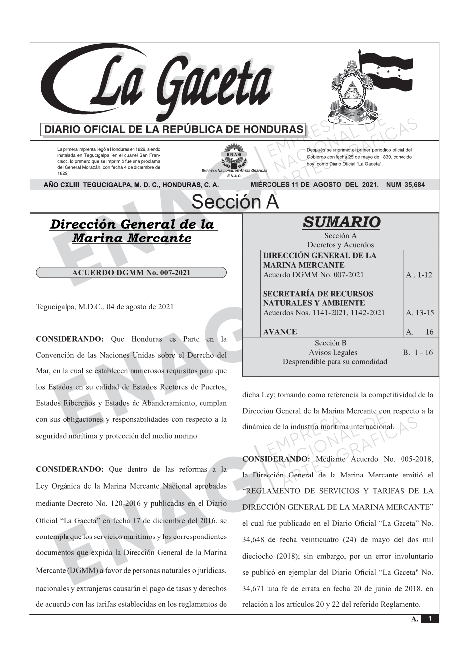 DIRECCIÓN GENERAL DE LA MARINA MERCANTEAcuerdo DGMM No. 007-2021