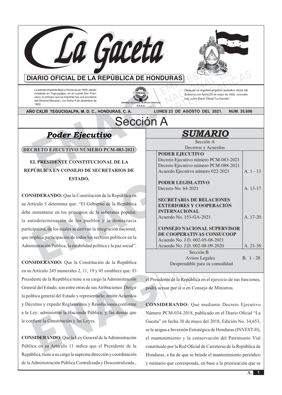 La Gaceta N° 35,696 del 23 de agosto de 2021