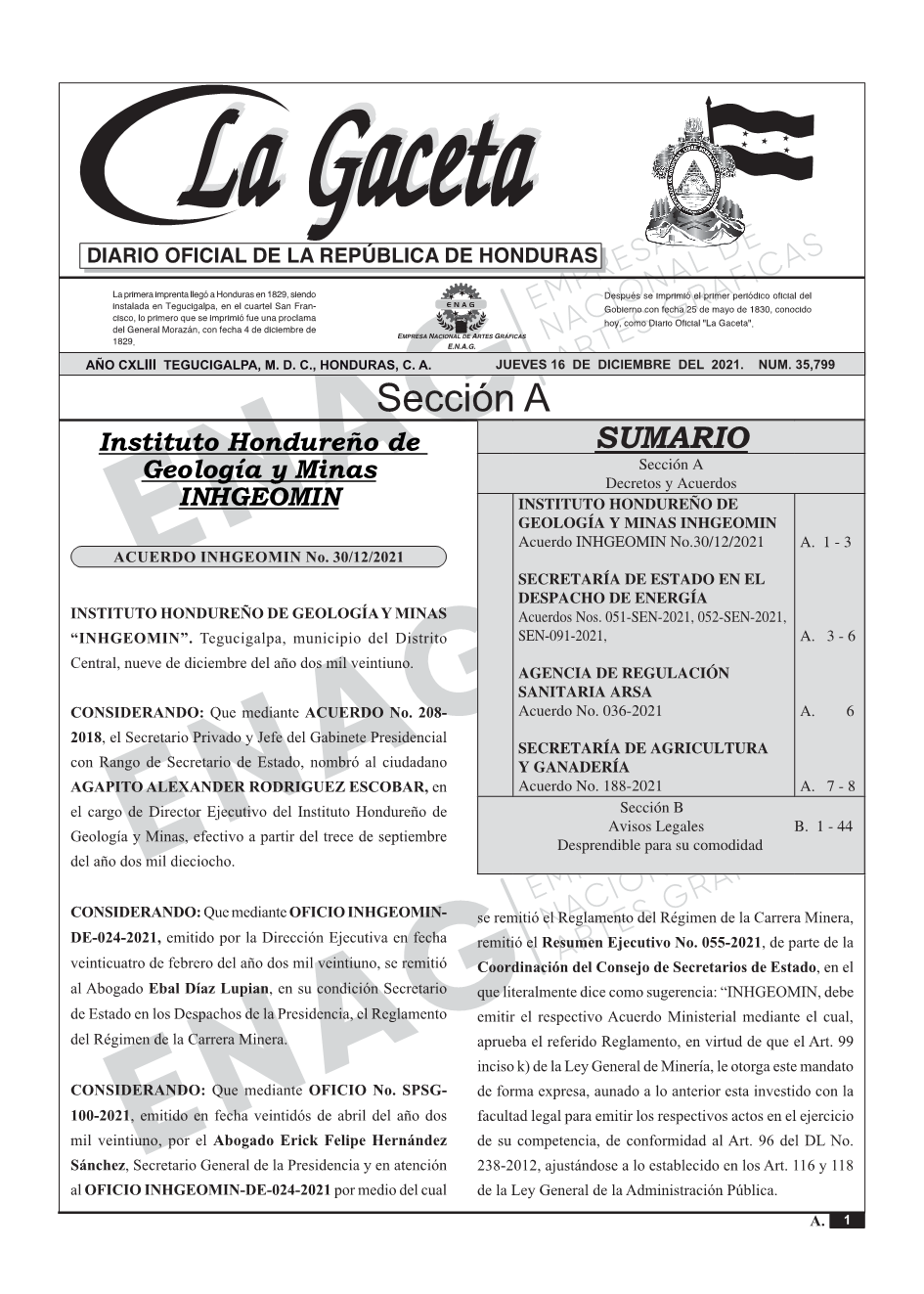 La Gaceta N° 35,799 del 16 de diciembre de 2021