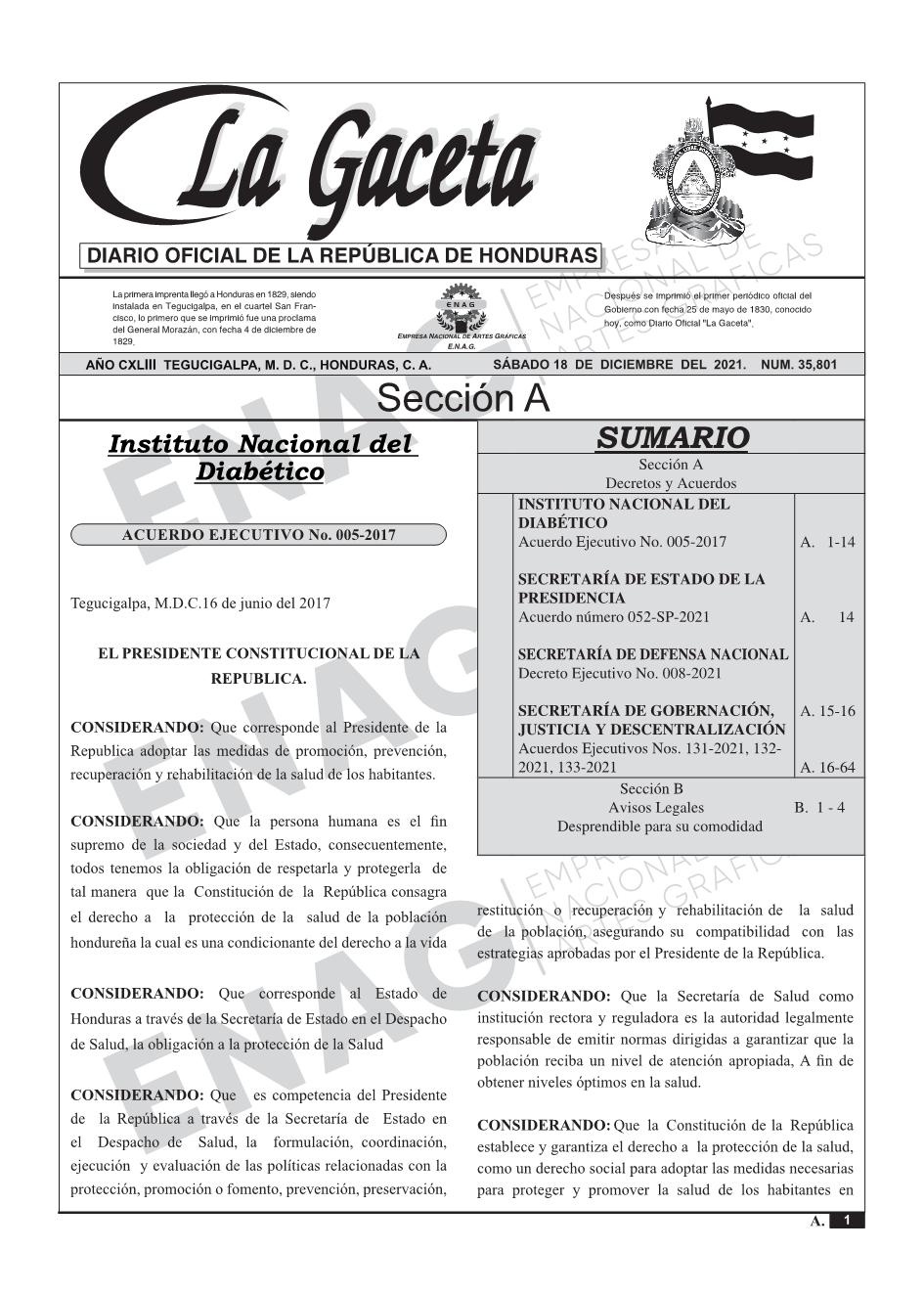 La Gaceta N° 35,801 del 18 de diciembre de 2021