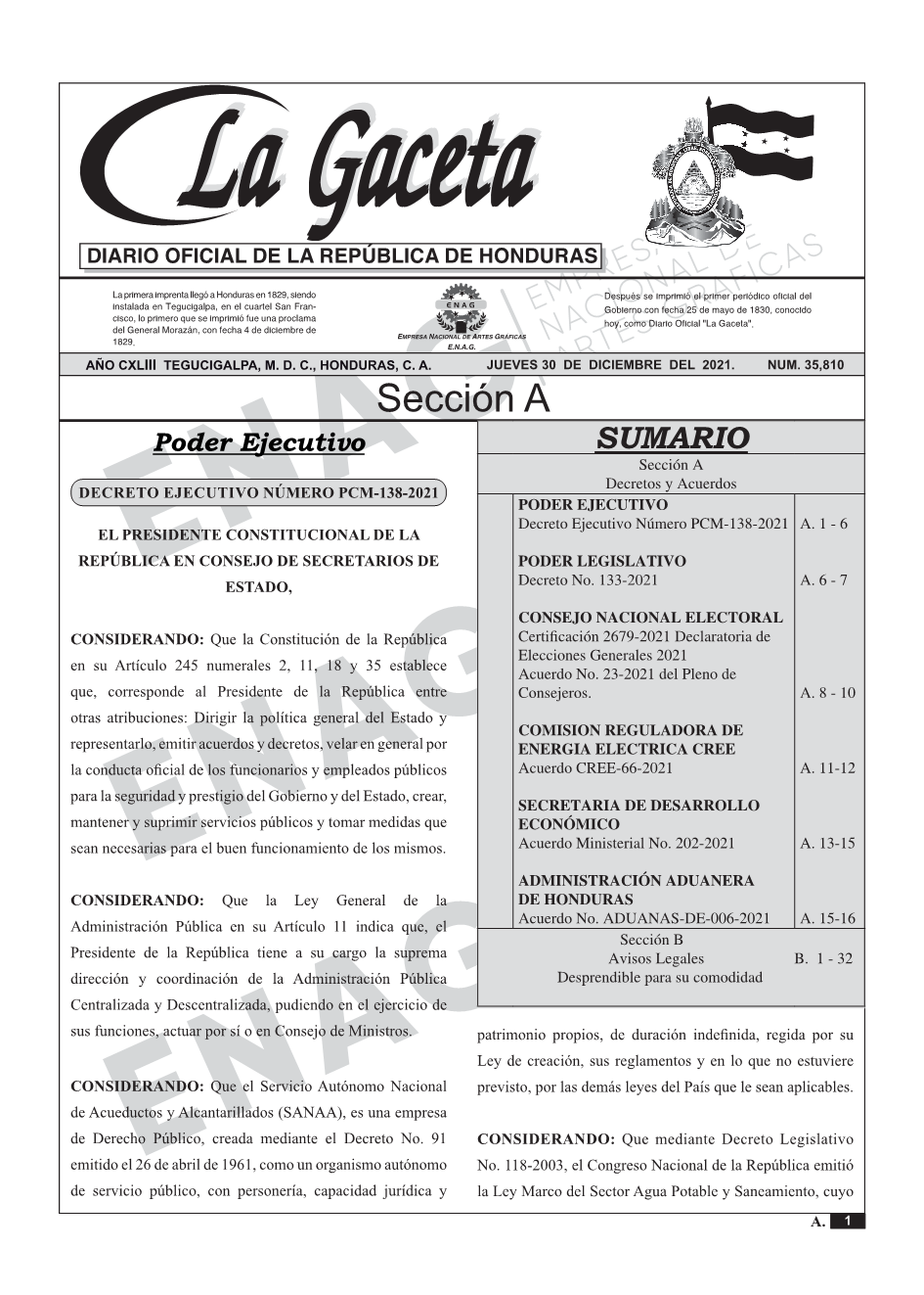 La Gaceta N° 35,810 del 30 de diciembre de 2021