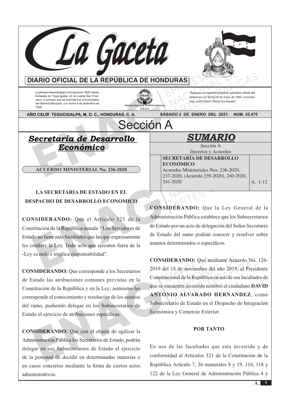 SECRETARÍA DE DESARROLLO ECONÓMICOAcuerdos Ministeriales Nos. 236-2020, 237-2020, (Acuerdo 239-2020), 240-2020, 241-2020