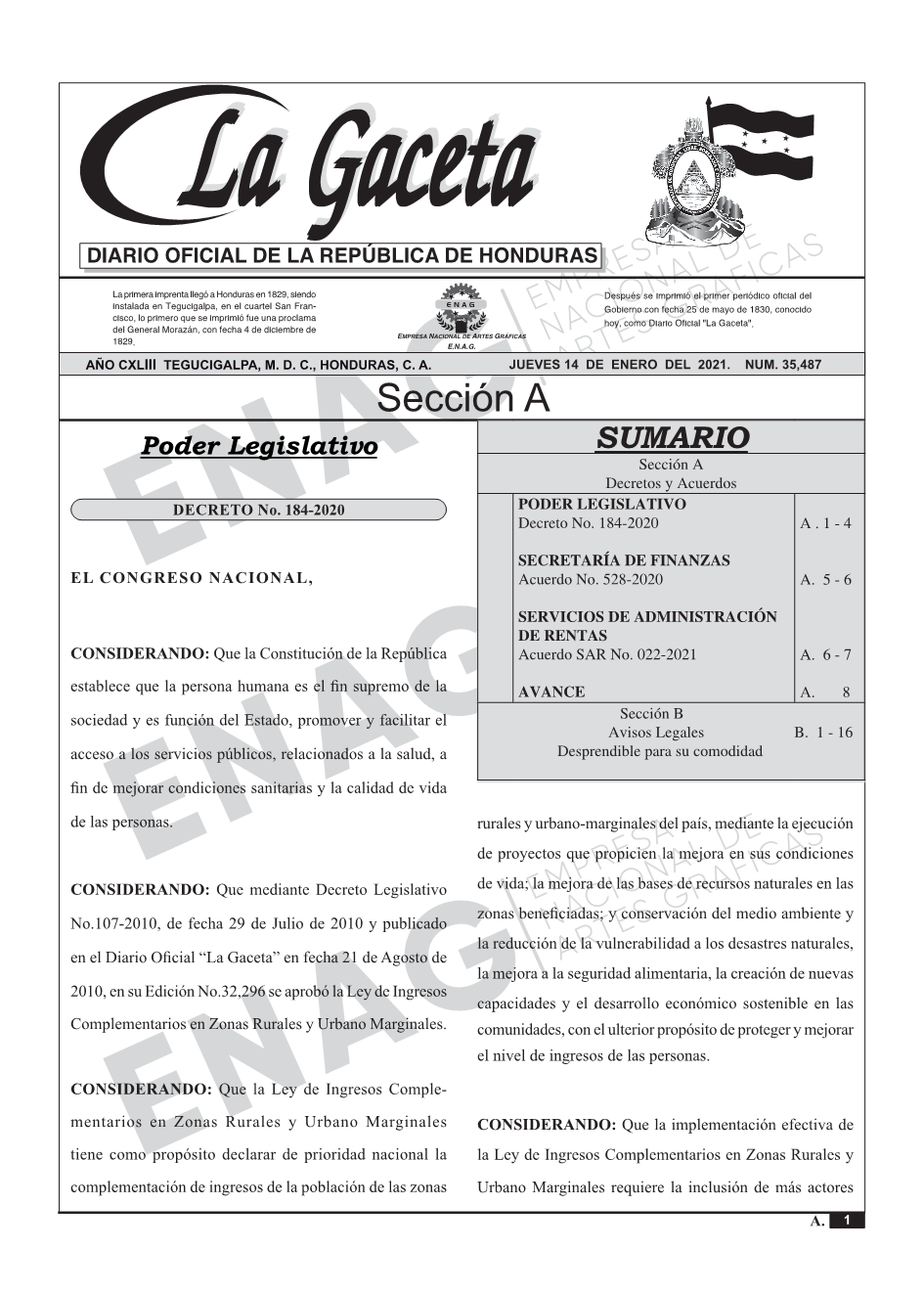 PODER LEGISLATIVODecreto No. 184-2020