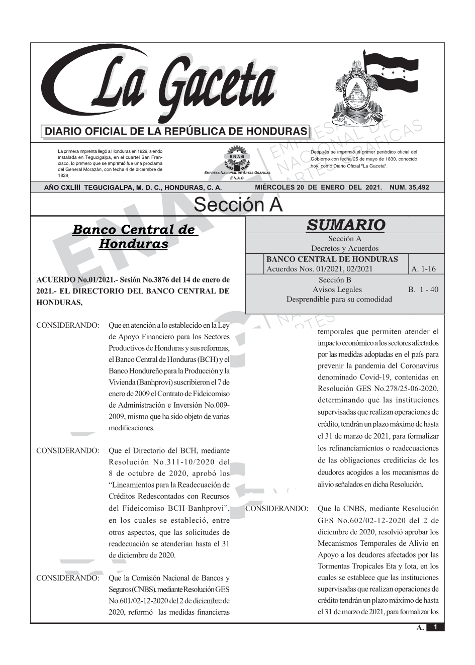 La Gaceta N° 35,492 del 20 de enero de 2021
