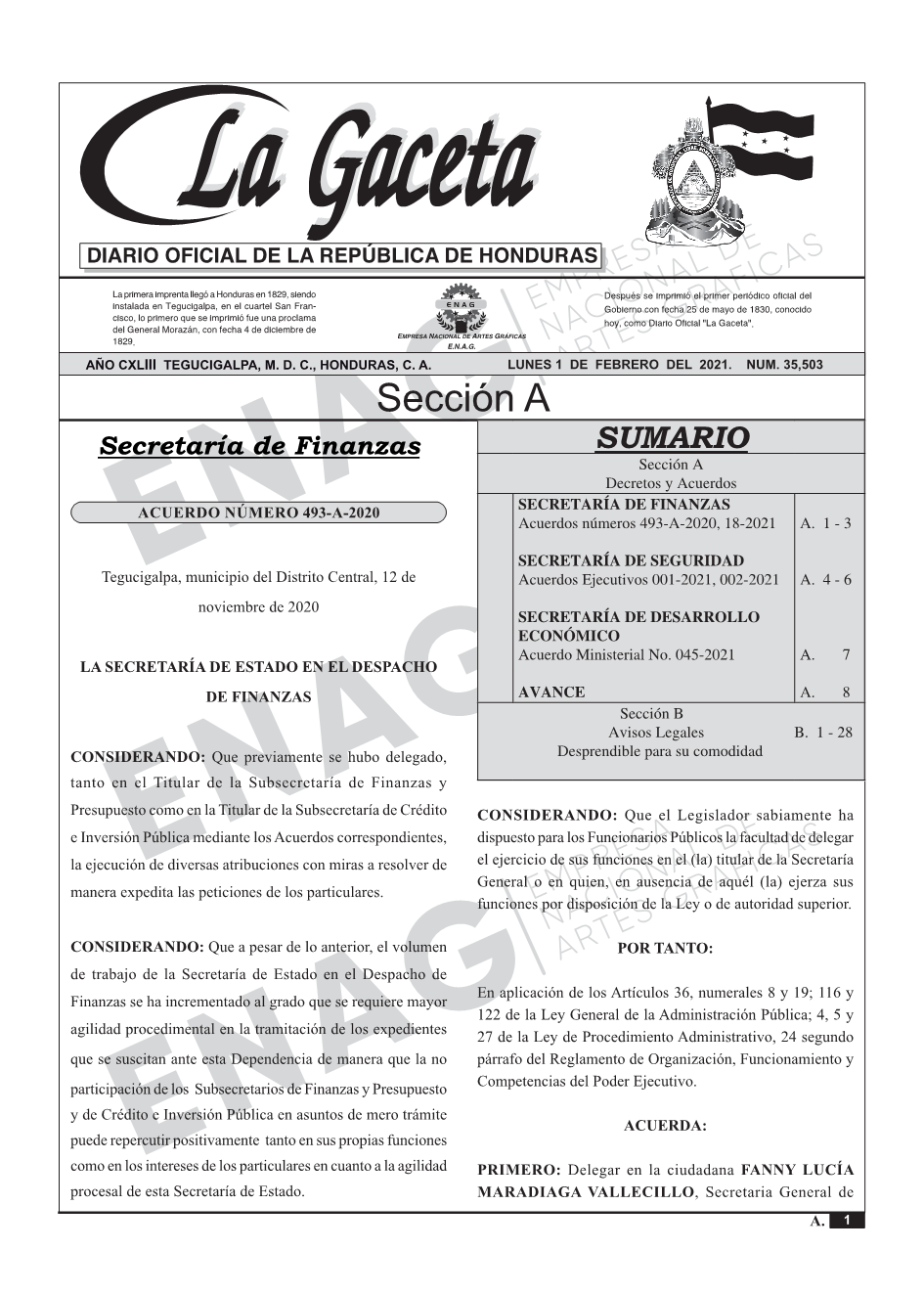 SECRETARÍA DE FINANZASAcuerdos números 493-A-2020, 18-2021