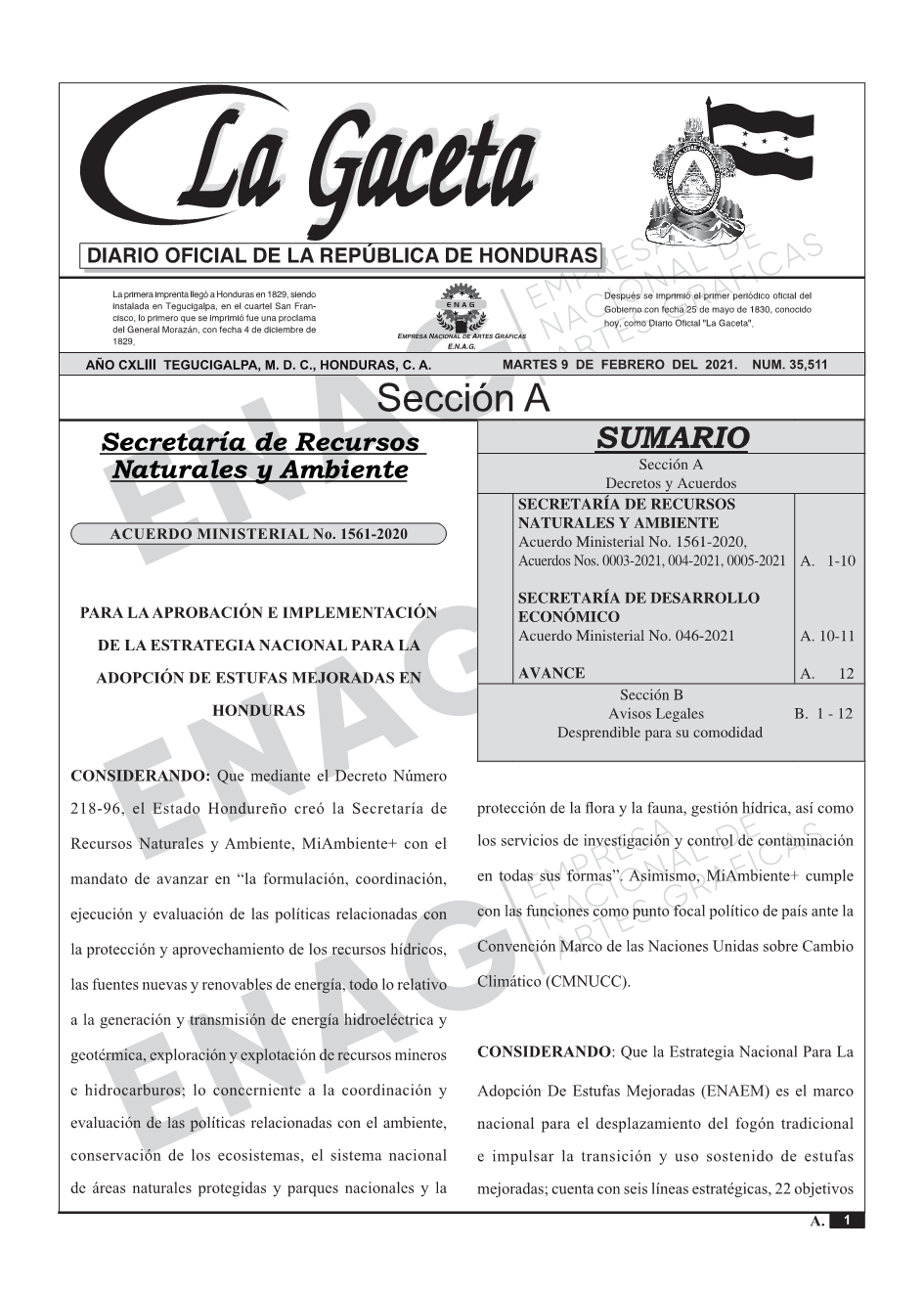 SECRETARÍA DE RECURSOS NATURALES Y AMBIENTEAcuerdo Ministerial No. 1561-2020, Acuerdos Nos. 0003-2021, 004-2021, 0005-2021