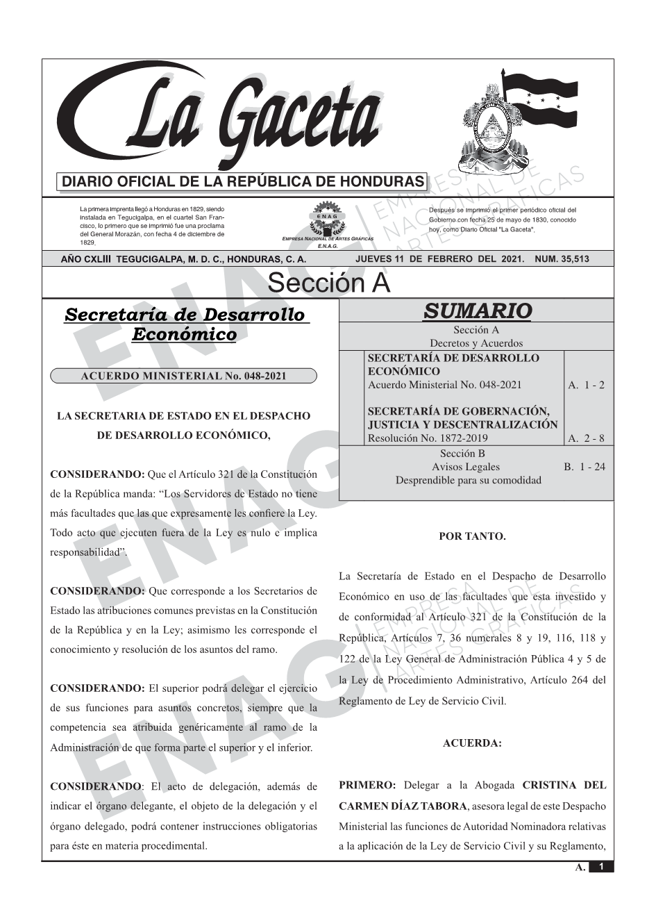 SECRETARÍA DE DESARROLLO ECONÓMICOAcuerdo Ministerial No. 048-2021