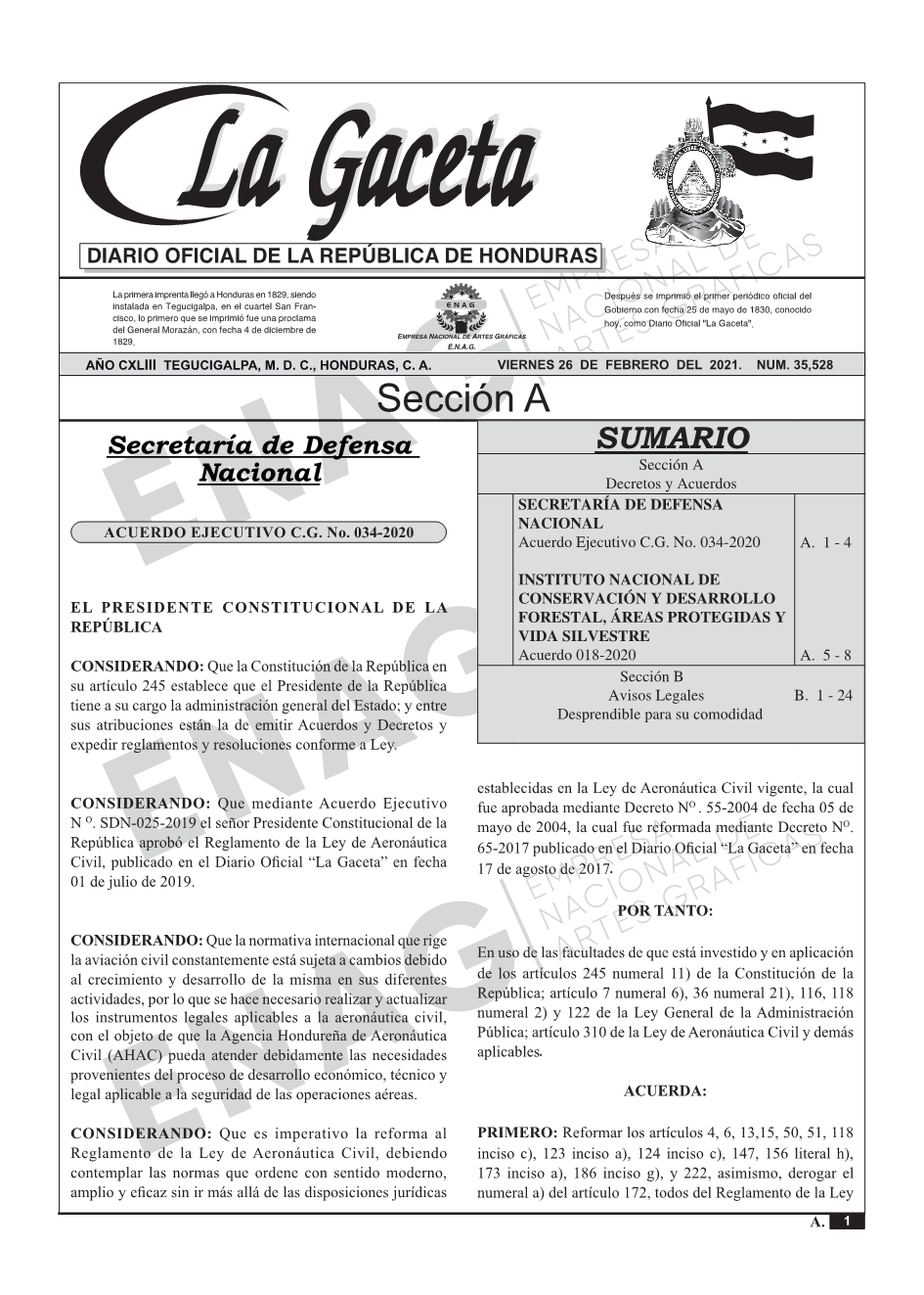 SECRETARÍA DE DEFENSA NACIONALAcuerdo Ejecutivo C.G. No. 034-2020