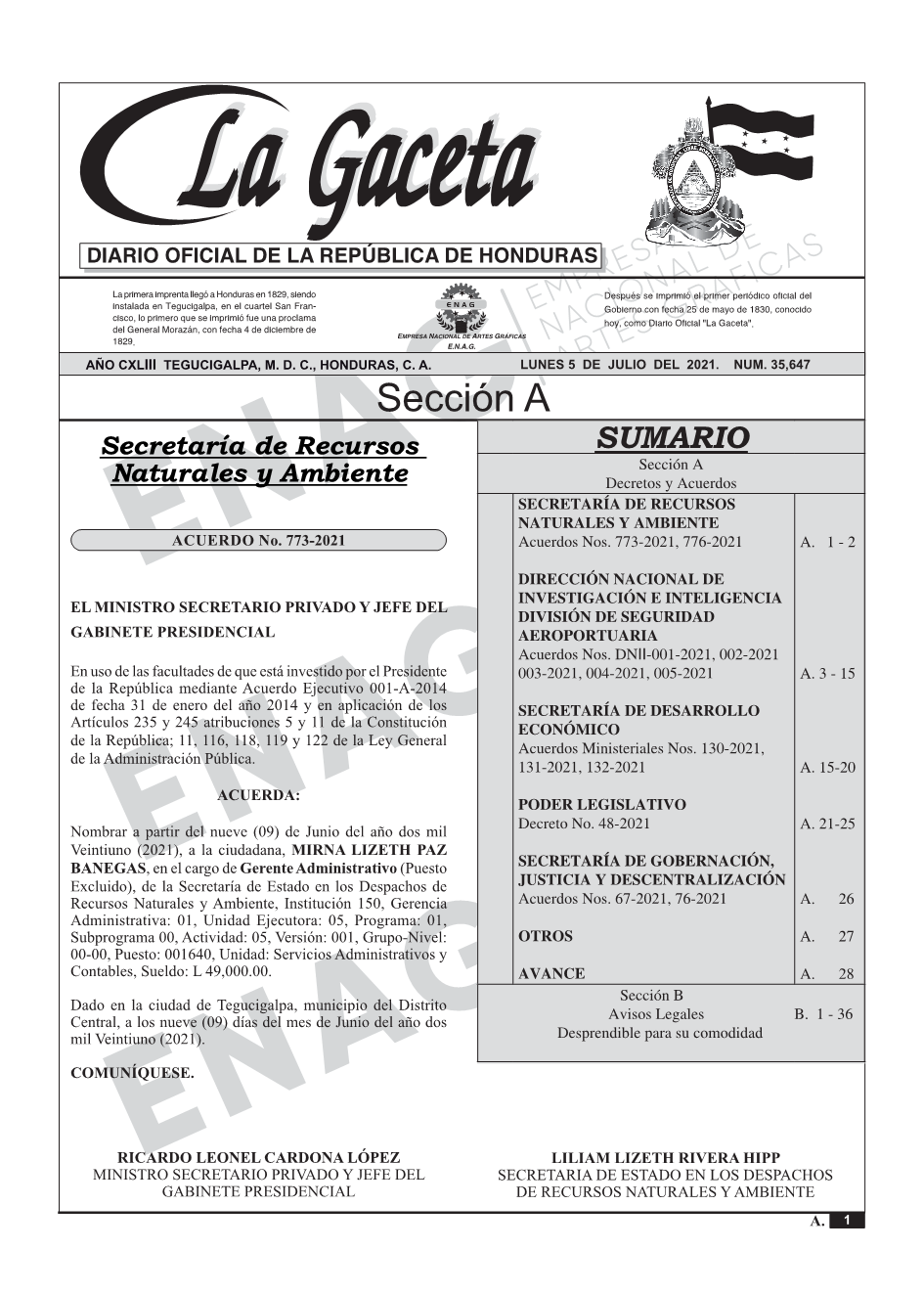 La Gaceta N° 35,647 del 05 de julio de 2021