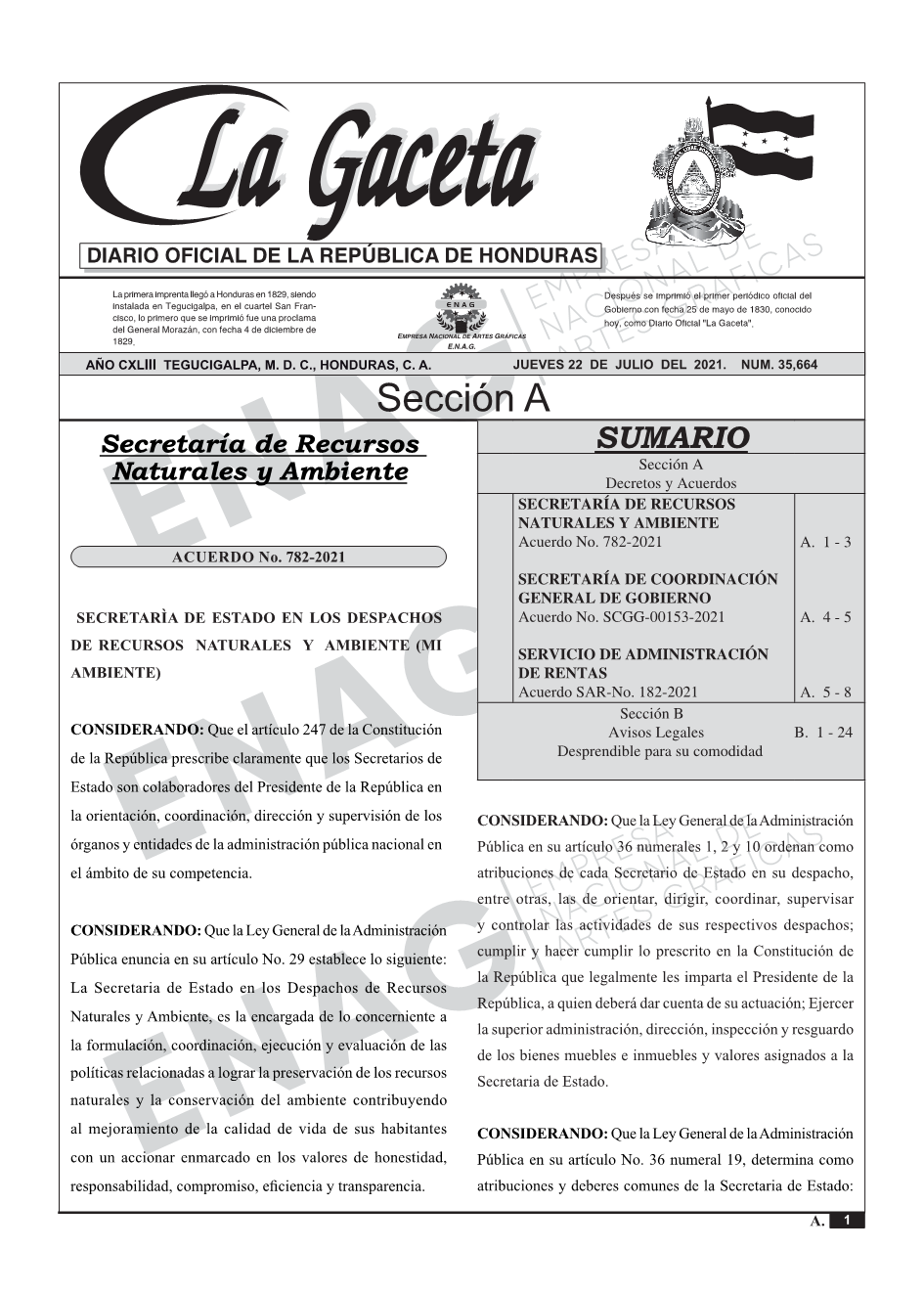SECRETARÍA DE RECURSOS NATURALES Y AMBIENTEAcuerdo No. 782-2021
