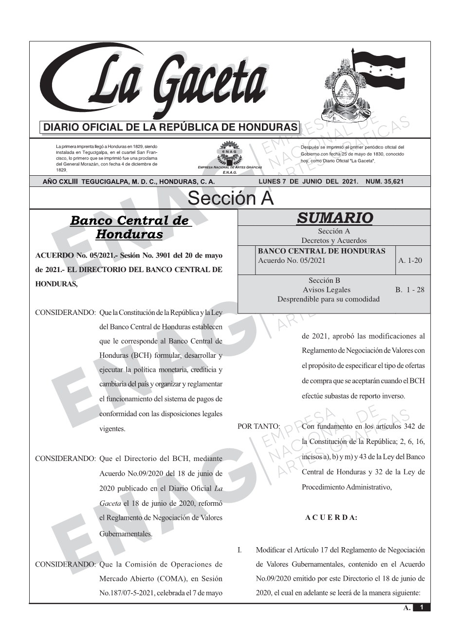 La Gaceta N° 35,621 del 07 de junio de 2021