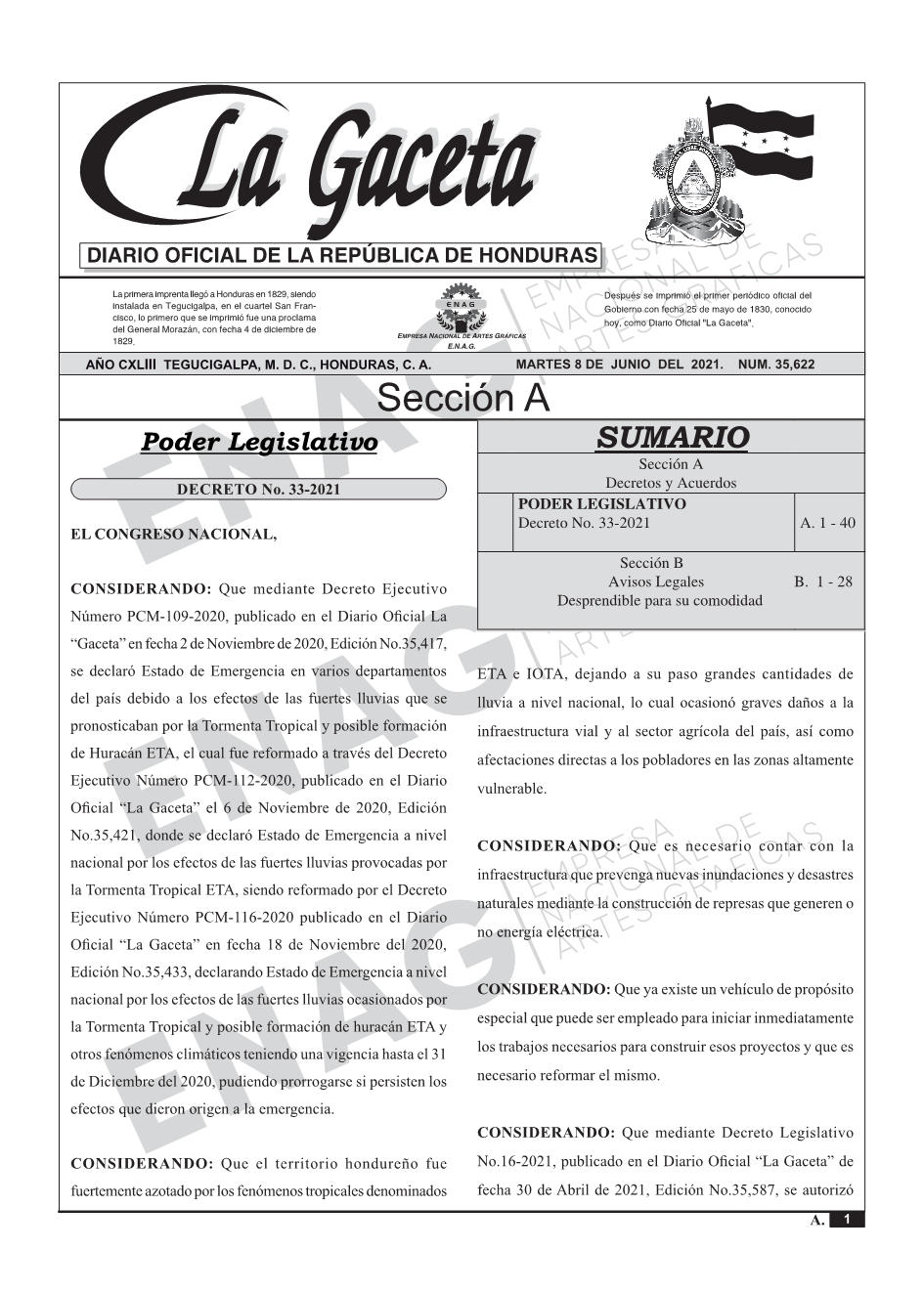 La Gaceta N° 35,622 del 08 de junio de 2021