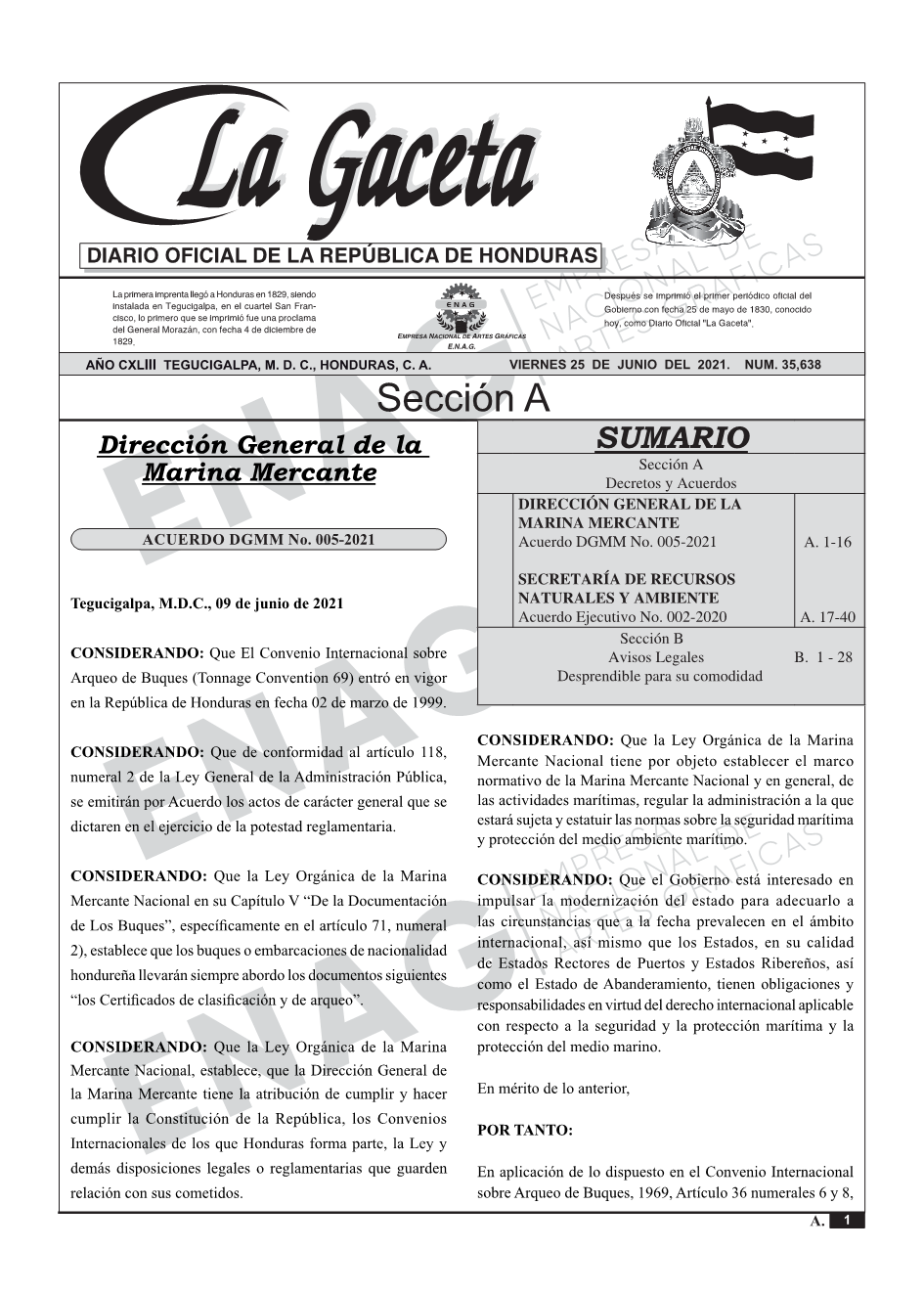 DIRECCIÓN GENERAL DE LA MARINA MERCANTEAcuerdo DGMM No. 005-2021