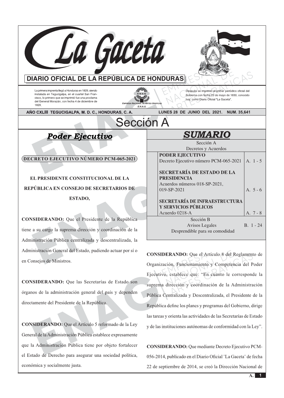 PODER EJECUTIVODecreto Ejecutivo número PCM-065-2021