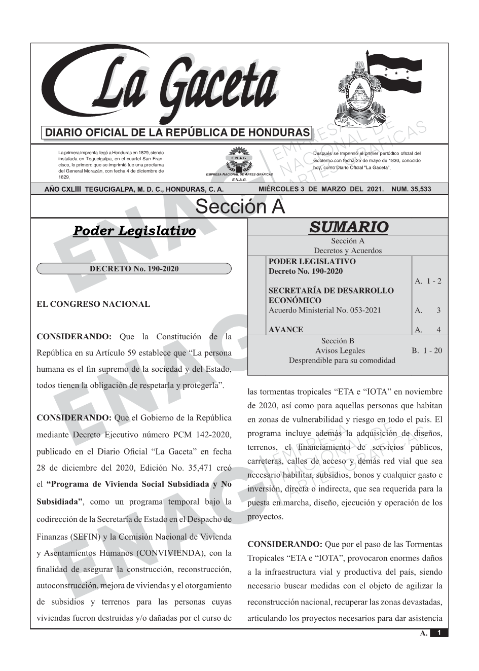SECRETARÍA DE DESARROLLO ECONÓMICOAcuerdo Ministerial No. 053-2021