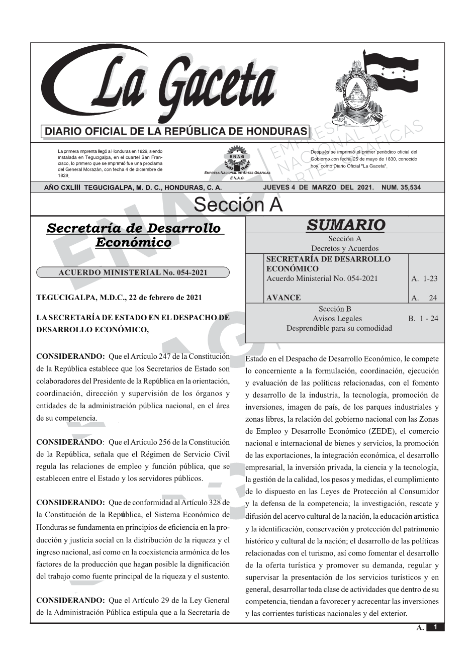 La Gaceta N° 35,534 del 04 de marzo de 2021