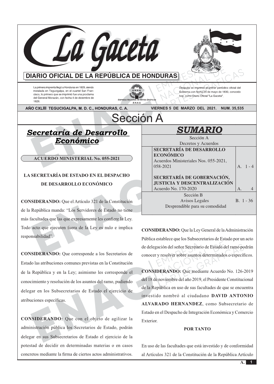 SECRETARÍA DE DESARROLLO ECONÓMICOAcuerdos Ministeriales Nos. 055-2021, 058-2021