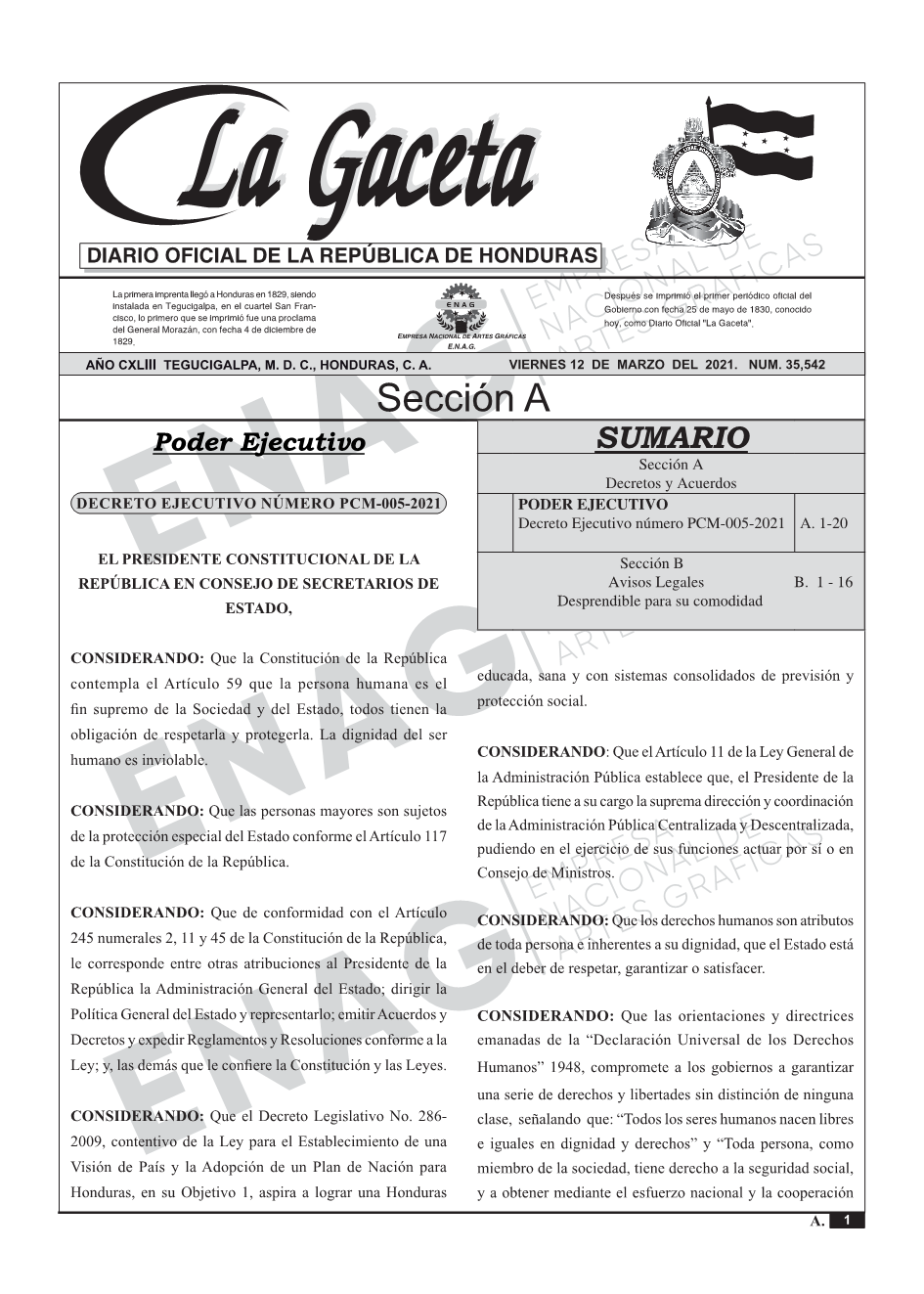 Decreto Ejecutivo número PCM-005-2021