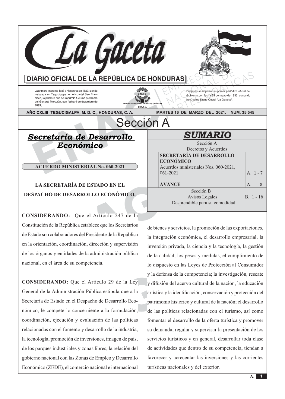 La Gaceta N° 35,545 del 16 de marzo de 2021