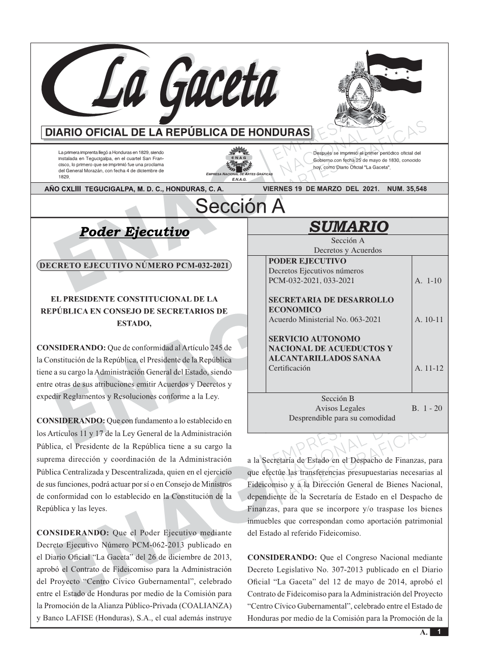 PODER EJECUTIVODecretos Ejecutivos números PCM-032-2021, 033-2021