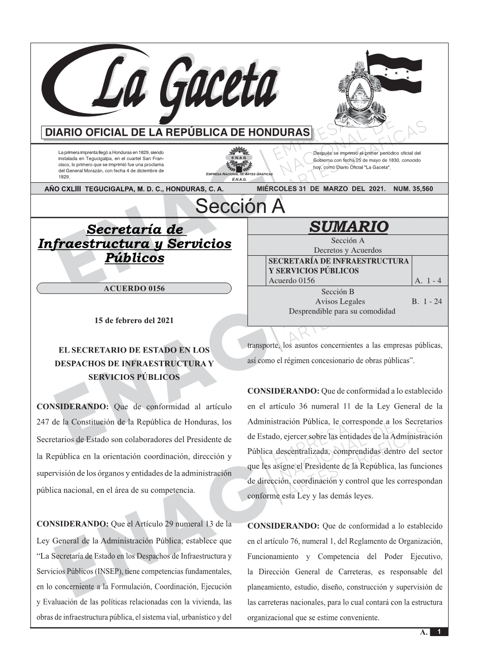 La Gaceta N° 35,560 del 31 de marzo de 2021