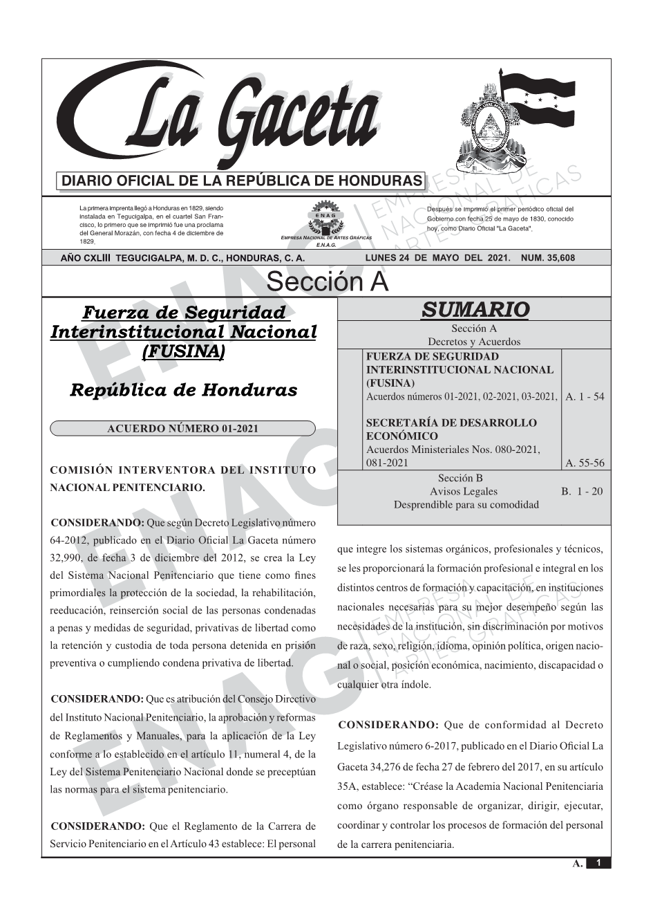 FUERZA DE SEGURIDAD INTERINSTITUCIONAL NACIONAL (FUSINA)Acuerdos números 01-2021, 02-2021, 03-2021