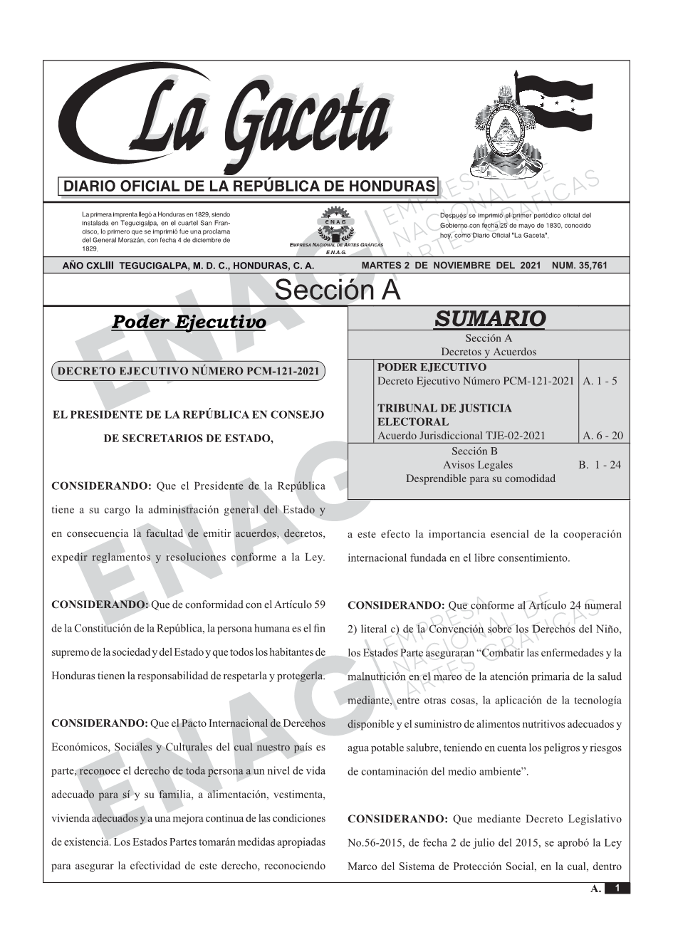 PODER EJECUTIVODecreto Ejecutivo Número PCM-121-2021