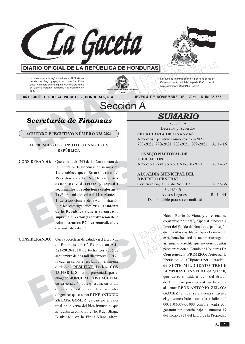 SECRETARIA DE FINANZASAcuerdos Ejecutivos números 378-2021, 788-2021, 790-2021, 808-2021, 809-2021