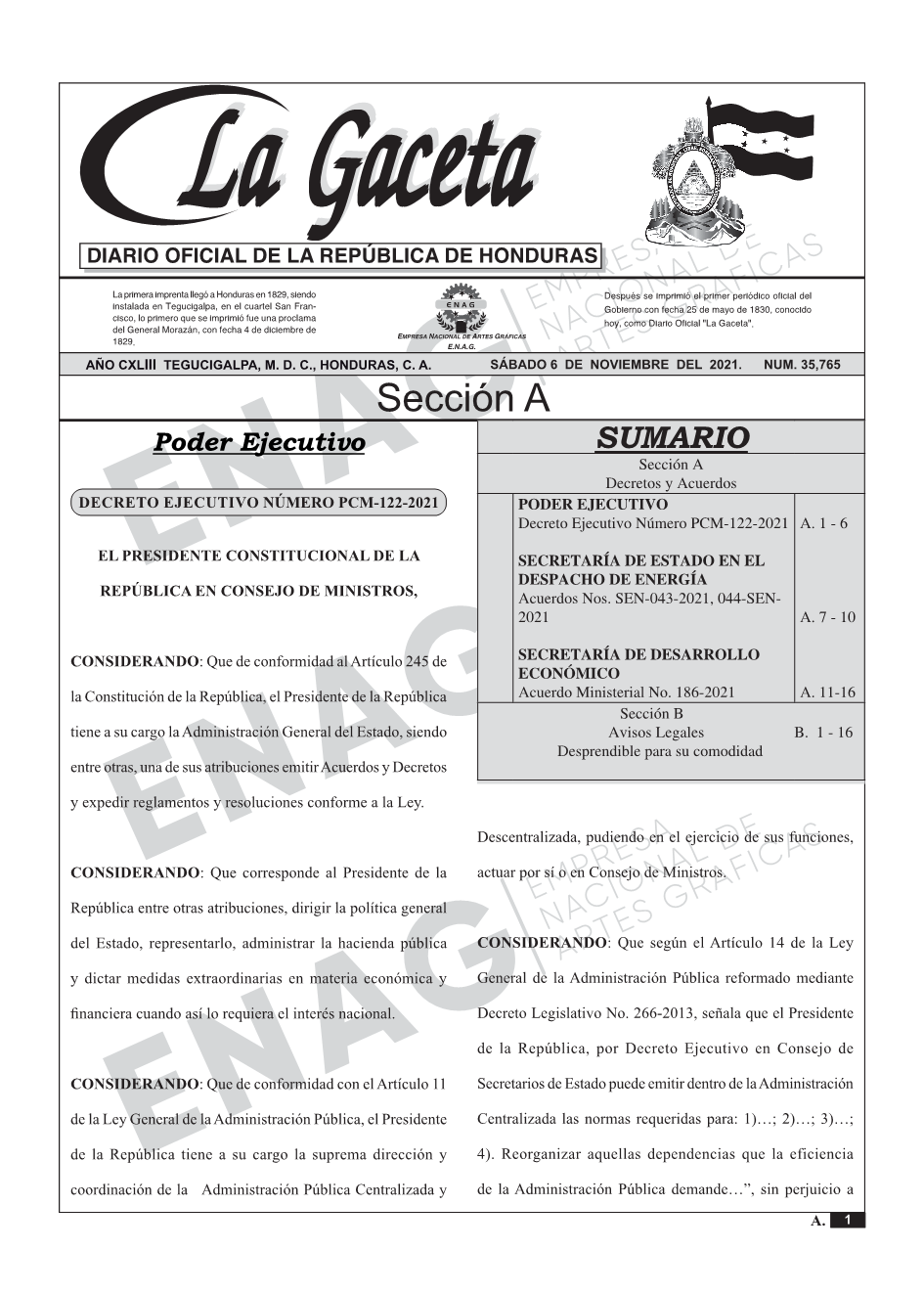 PODER EJECUTIVODecreto Ejecutivo Número PCM-122-2021