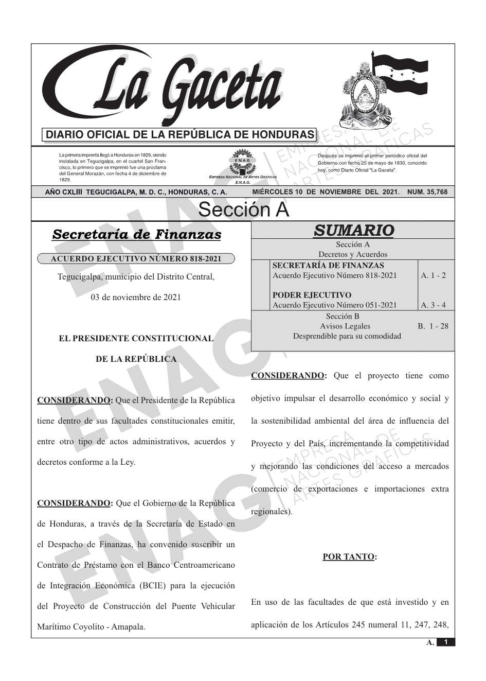 SECRETARÍA DE FINANZASAcuerdo Ejecutivo Número 818-2021