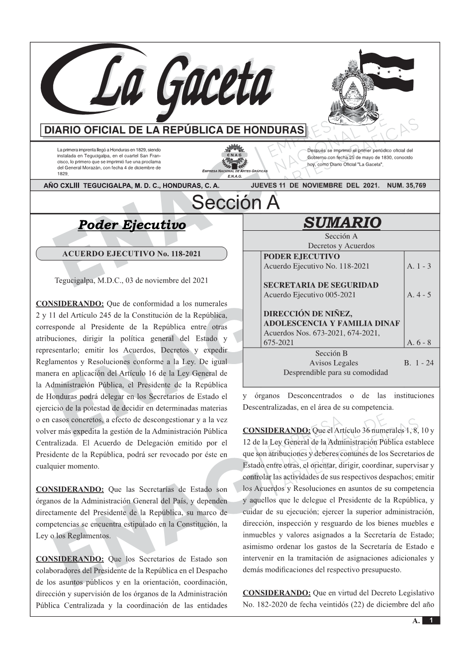 PODER EJECUTIVOAcuerdo Ejecutivo No. 118-2021