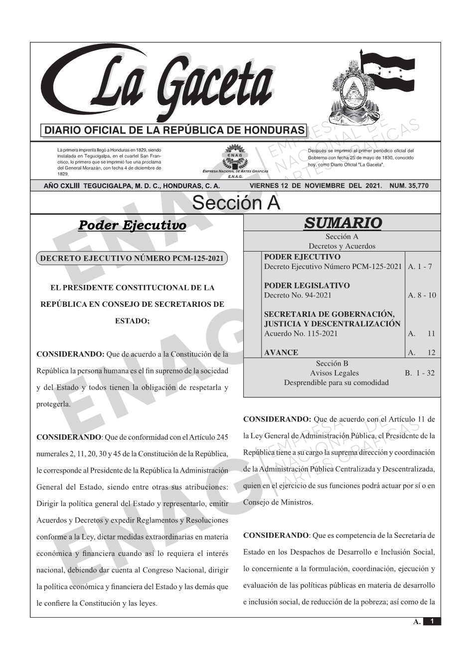 PODER EJECUTIVODecreto Ejecutivo Número PCM-125-2021