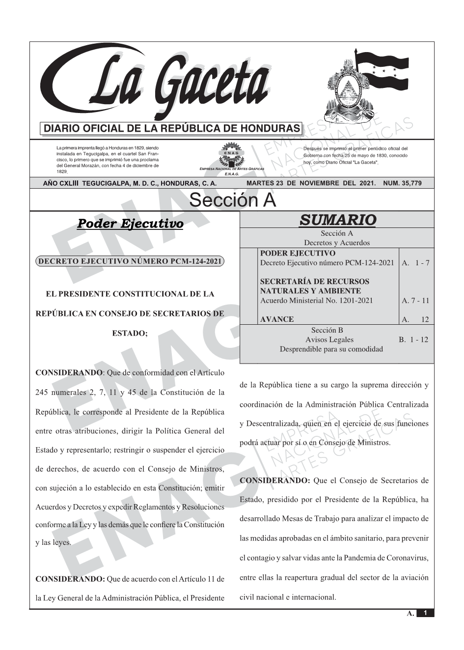 PODER EJECUTIVODecreto Ejecutivo número PCM-124-2021