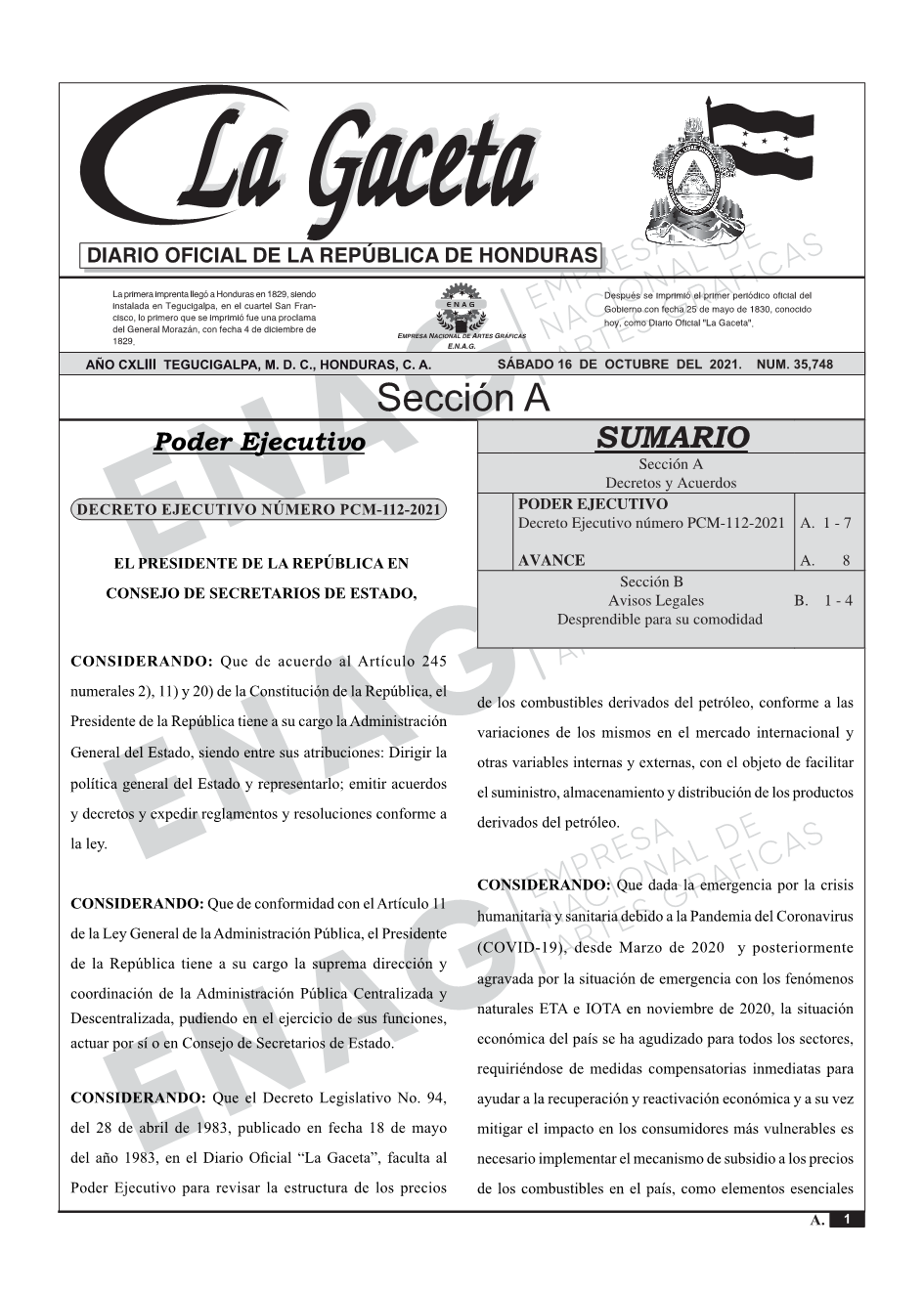 La Gaceta N° 35,748 del 16 de octubre de 2021