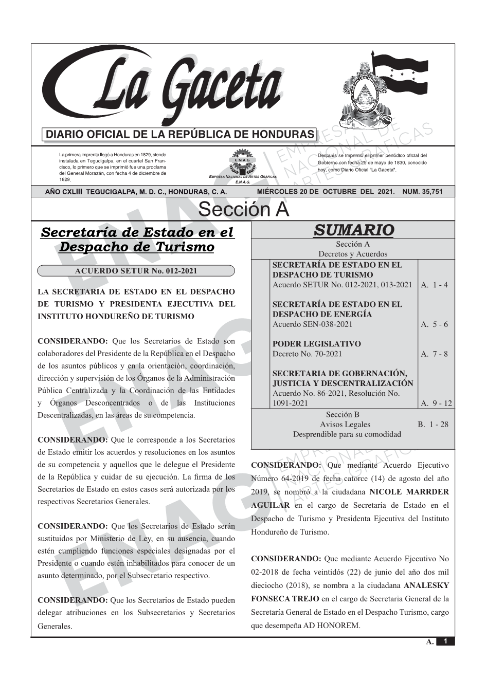 La Gaceta N° 35,751 del 20 de octubre de 2021