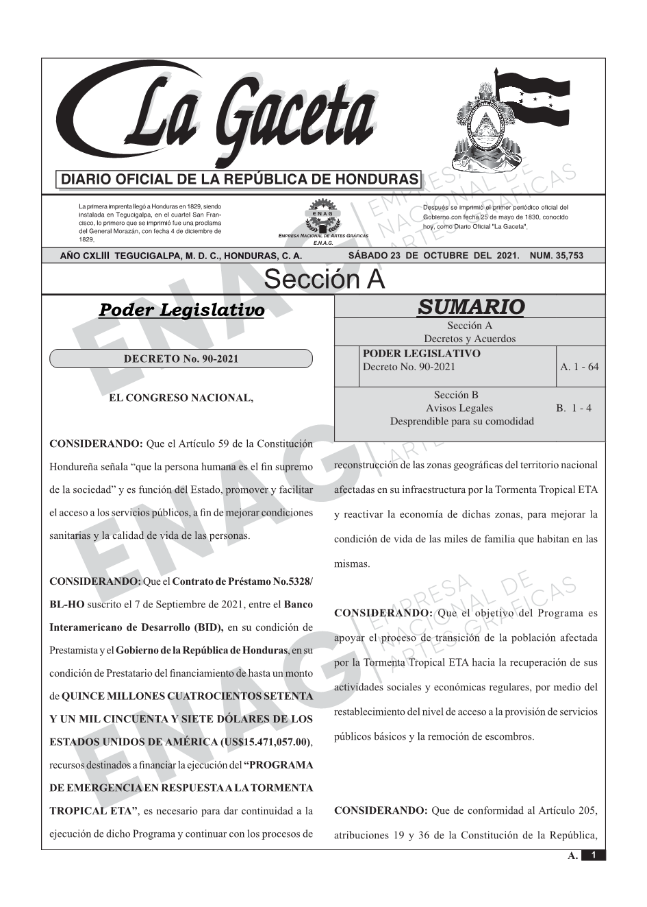 La Gaceta N° 35,753 del 23 de octubre de 2021