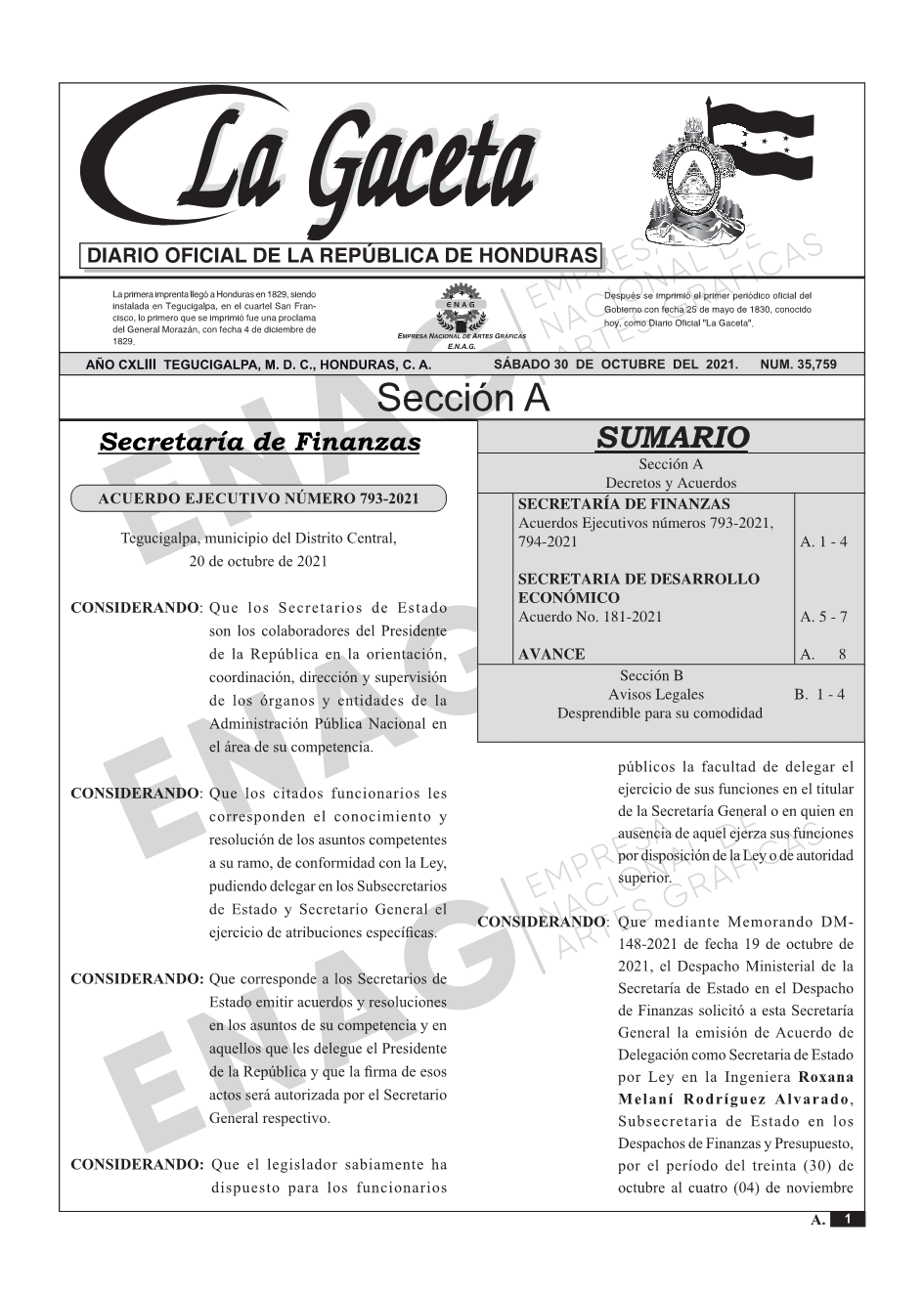 SECRETARÍA DE FINANZASAcuerdos Ejecutivos números 793-2021, 794-2021