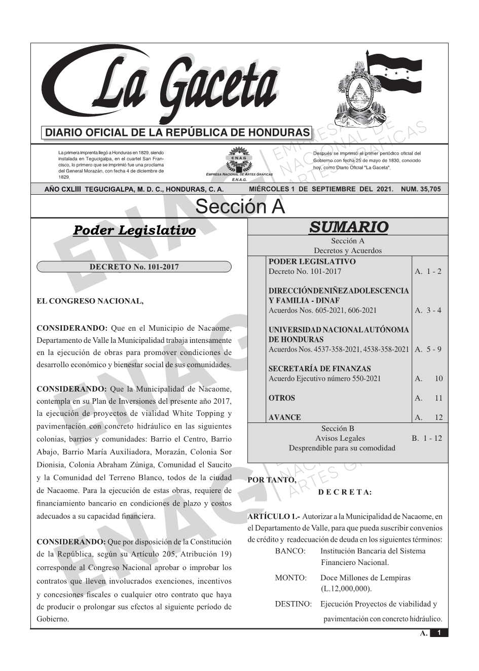 La Gaceta N° 35,705 del 01 de septiembre de 2021