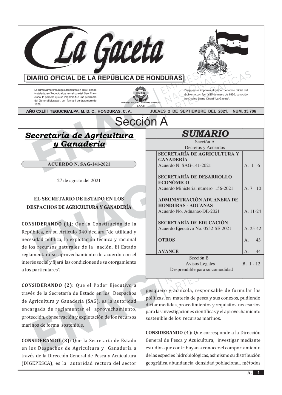 Acuerdo N. SAG-141-2021