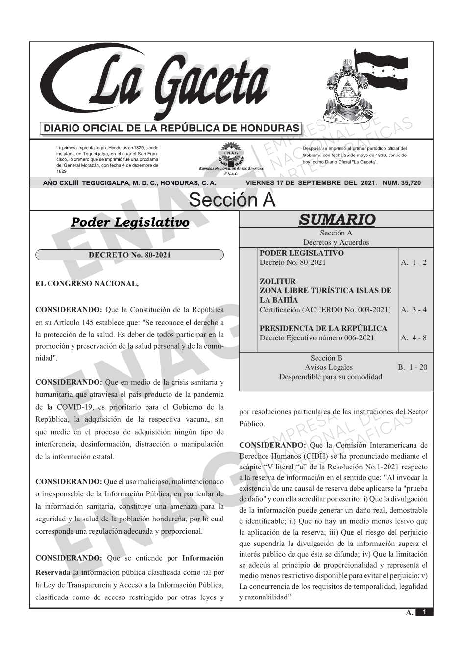 PODER LEGISLATIVODecreto No. 80-2021