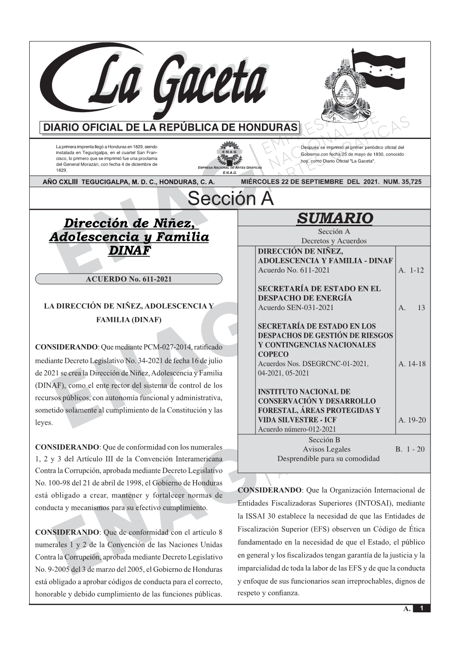 La Gaceta N° 35,725 del 22 de septiembre de 2021