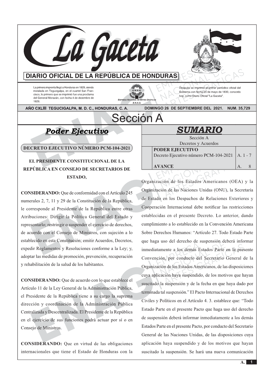 La Gaceta N° 35,729 del 26 de septiembre de 2021