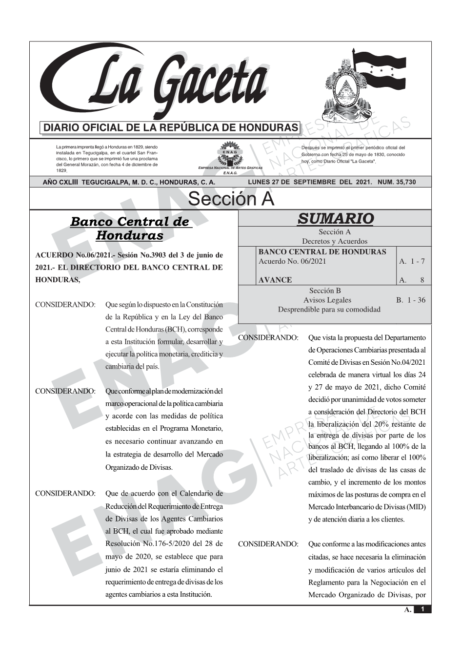 La Gaceta N° 35,730 del 27 de septiembre de 2021