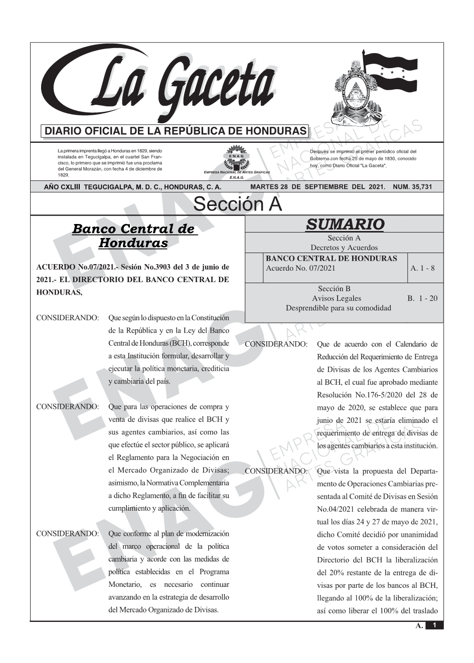 La Gaceta N° 35,731 del 28 de septiembre de 2021
